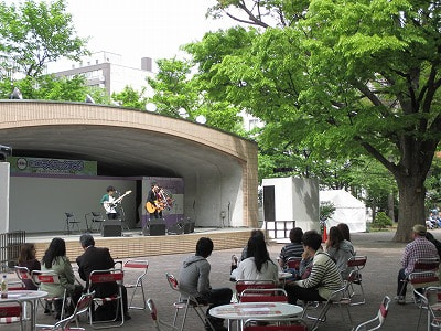 今週前半は「リラ冷え」そのままに小雨交じりの寒い日が続きました。日曜日には雪が降った地方もある北海道ですが、本日は久しぶりに雨の心配がなさそうなので、昼下がり会場へ足を運んでみました。大通公園のライラック祭りは、西5丁目~西7丁目の3会場成り立っています。色々な「体験コーナー」主体な西5丁目会場、西6丁目会場ステージでは市内のミュージシャンが演奏していたり。