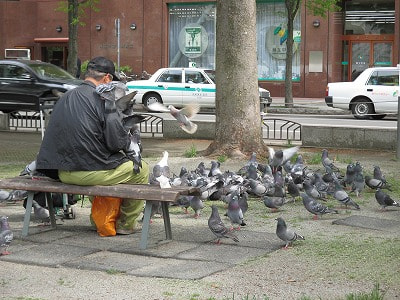 公園の主(?)の鳩。餌をくれるおじさんにかなり懐いている様子。
