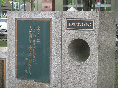 「命短し 恋せよ乙女」の作詞で知られる吉井 勇さんが、昭和30年に来道した際に大通公園のライラックに感動してこの歌を詠んだそうですよ。