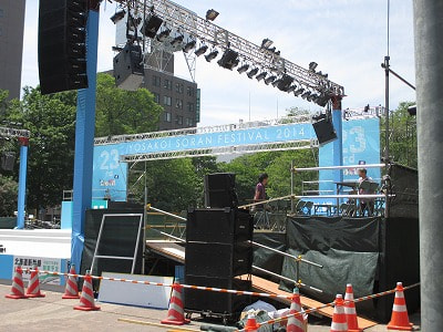 そんな暑い北海道・札幌では今日から、よさこいソーラン祭りが開催されます。会社のすぐ近く、大通西8丁目のステージでは、18時からのオープニングイベントに向けて準備の真っ最中です。