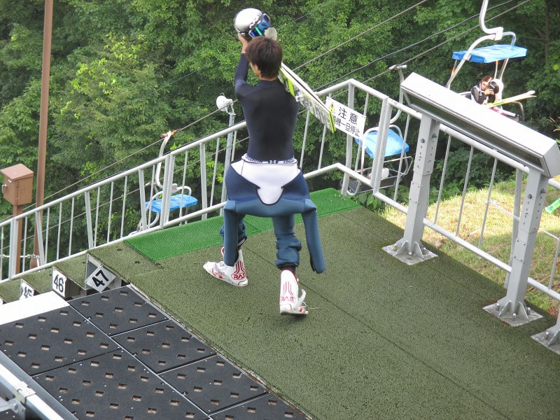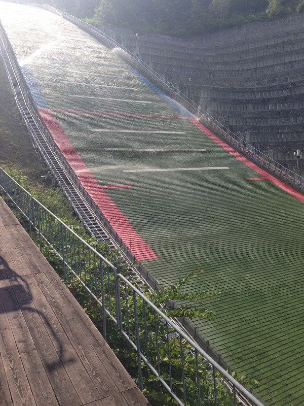 夏のジャンプは水を撒いて行われるのですね。