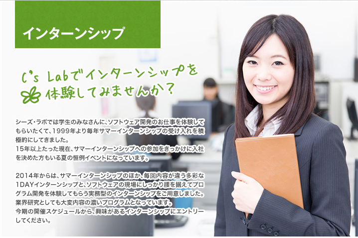 IT業界に興味がある学生のみなさん、プログラム経験があってもなくても、まずは業界研究としてお越しください。プログラミングの奥の深さ、シーズ・ラボでの仕事のオモシロさ、しっかりとお伝えします!