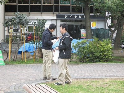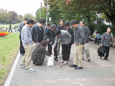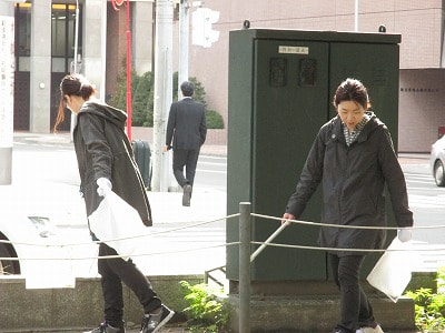 今日は薄日が差すお天気の札幌です。お昼過ぎの気温17度。この時期としては平年並みの気温です。さて、今日は大通公園清掃活動の2日目です。さっそうと皆さん大通公園へ出動!火ばさみとゴミ袋、軍手を装着して、いざ!ごみ拾いです!今日も煙草の吸殻をはじめ、細かいごみを中心に拾いました。明日で最終日となりますが、雨の予報もなく清掃日和に恵まれそうです。明日もがんばります!