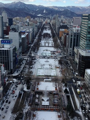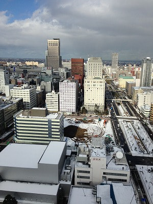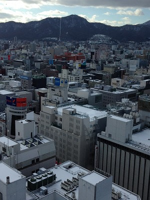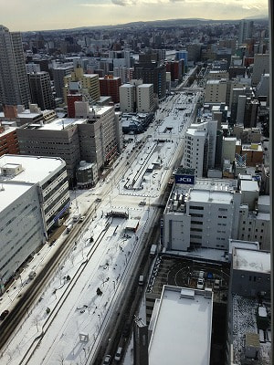 札幌を一望することができます。この日は雪が結構降った翌日でしたので、札幌の街が白く染まっています。