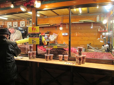 会場では、グリューワインのいい香りが漂っています。ローストアーモンドの屋台もありますよ!