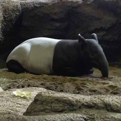 動物園内には熱帯雨林館もあって、アジアアロワナやコツメカワウソやマレーバクなどがいます。今までこんな間近でバクをマジマジと見たことはありませんが、円らな瞳ですごく可愛かったですよ。![]()