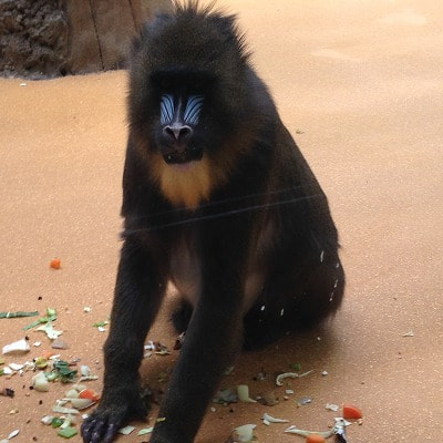 類人猿館ではマントヒヒの餌やり時間に遭遇!