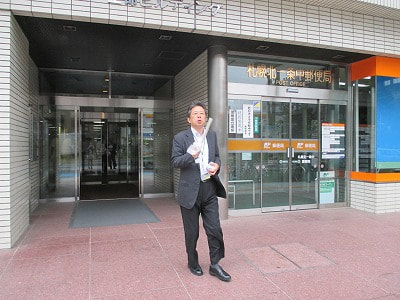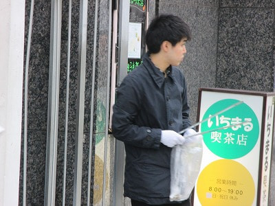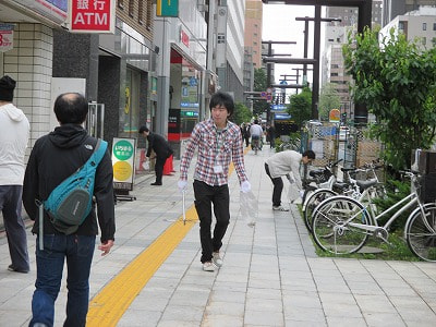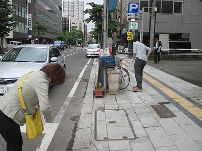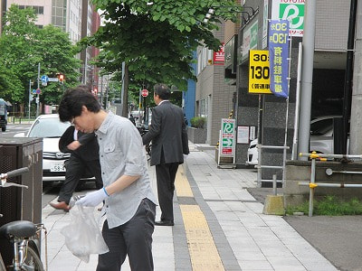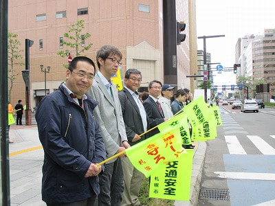 シーズ・ラボがある北一条オフィス町内会が主催のこのイベント。北一条通りのゴミ拾いと、安全運転を呼び掛ける旗振りをしています。