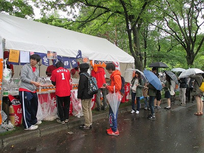 1km越えの圧巻な模擬店は今年も健在です。雨の中、がんばっています!・・・が、天候のせいでアイス系の模擬店は大苦戦。「大変なんです!お願いします!」と売り込みは懇願の域(笑)。![]()
