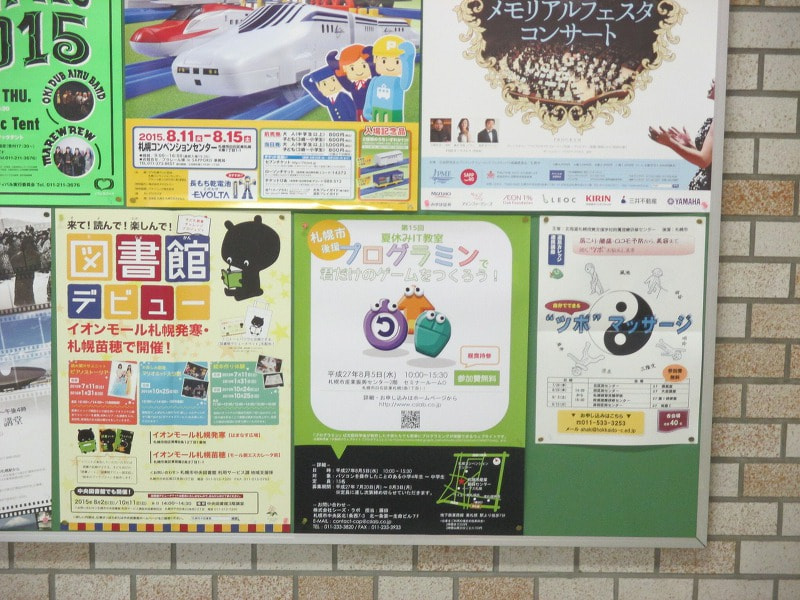 7月15日より、地下鉄大通駅のふれあいインフォメーションに子供向け夏休みIT教室のポスターを掲示して頂きましたよ。