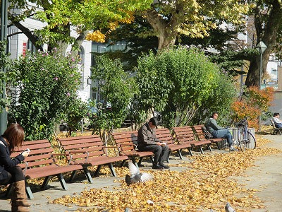 この時期貴重な小春日和を楽しむ人たちもいます。夏の暑い日にはたくさんの子供たちで賑わった噴水も、冬の間はしばらくお休みです。清掃をして、また来春に会いましょう!今月の終わりには、札幌市街地でも初雪のニュースが聞けるかもしれません。