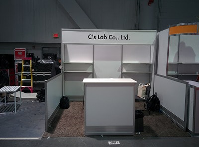 本日は、展示前準備日ということで、先発メンバーで展示ブースの設営をする予定です。