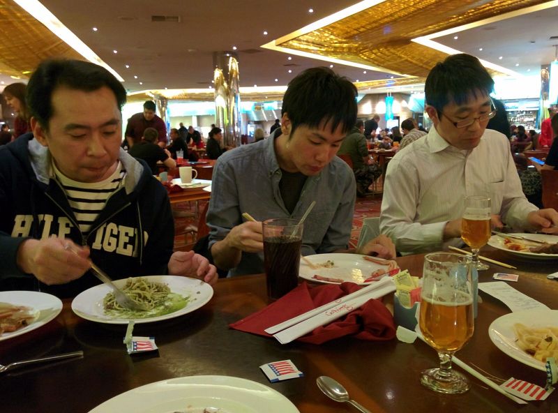 CESも無事終わり、かんぱーい!のあとは、みんなで貪り食ってます。![]()