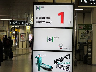 札幌まで来ないのであまり実感が湧かないのが正直なところですが、北海道にとって記念すべき日になるのは間違いありませんね。札幌駅東口では、こんなイベントが。