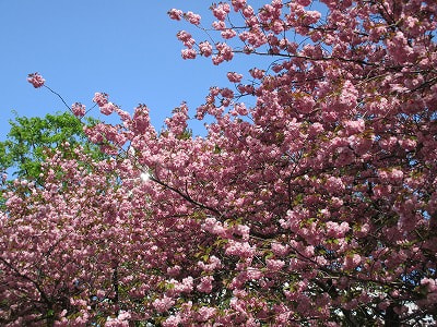 会社への帰り道、道庁を横切ったら八重桜が満開でした。