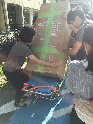 箱に入って、ストレッチャーで乗せられ大型タクシーで移動するという初めての経験もしましたよ(笑)