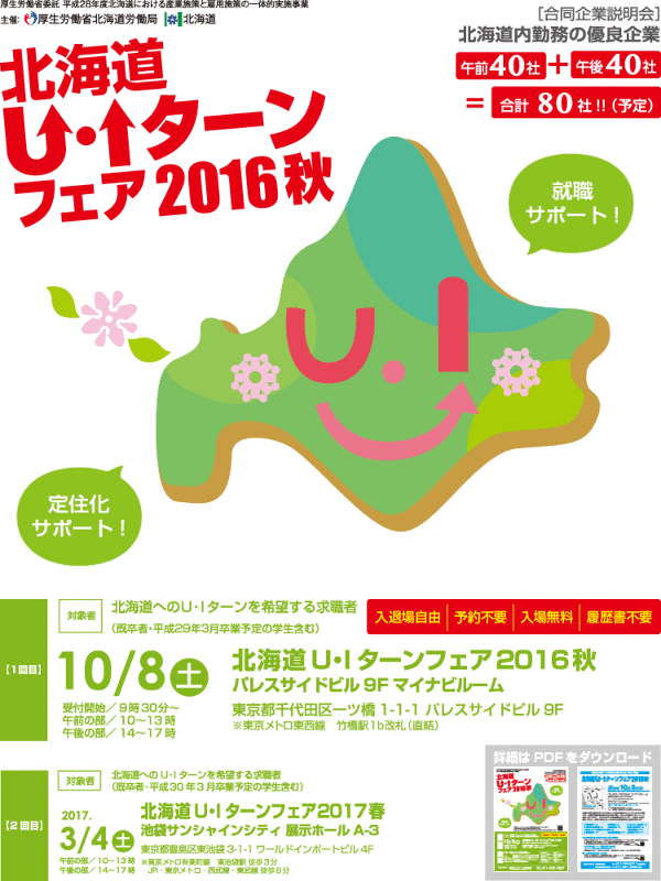 対象者:北海道へのU・Iターンを希望する求職者 (既卒者・平成29年3月卒業予定の学生含む)