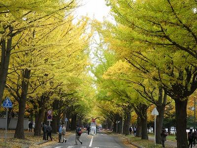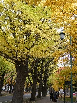 今年も北大校内のイチョウ並木が綺麗に色付きました。イチョウだけではなく、紅葉の赤も綺麗ですよ。イチョウの色付きが遅いと言われていた今年の秋ですが、例年より早く雪が降り始めたので落葉も早まりそうです・・・見ごろが短いのかもしれません。見に行かれる場合は暖かい恰好で、お早めにお出かけくださいね。