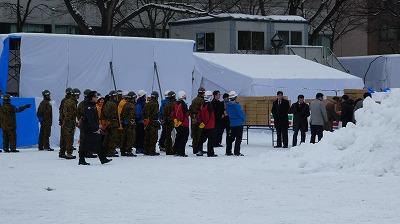 足場がかかってるので分かりにくいですが「アイスブロック工法」と言われる技術で細かい箇所まで作り込んでいくそうです。ちなみにこちらの大雪像の制作担当は自衛隊のみなさんです。![]()