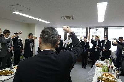 入社式の後は恒例の懇親会でかんぱーい!
