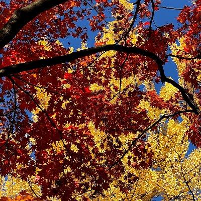 この日は素晴らしい秋晴れで、銀杏の金色や紅葉の赤が良く映えていました。