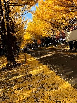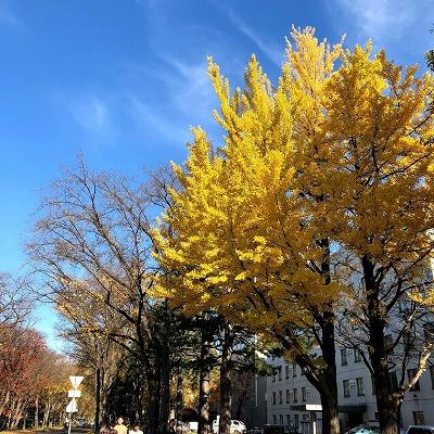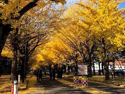 初雪が降ると一気に落葉してしまうかもしれません。初雪までの少しの間、北海道大学の銀杏並木をぜひ散策してみてくださいね。