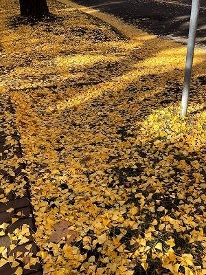 道路を覆う落ち葉も金色の絨毯みたいで綺麗ですね。![]()