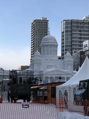 制作途中の足場がある雪像は、地元の人でなければなかなか見られない景色でして・・・。