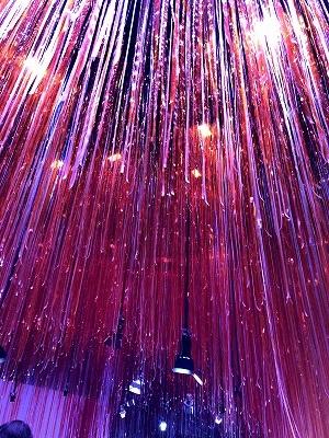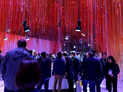 アウディは展示スペースが個性的で、上からセロハンのような紐が降り注いでおり、展示物を見るためにセロハンの壁をくぐらないといけませんでした。