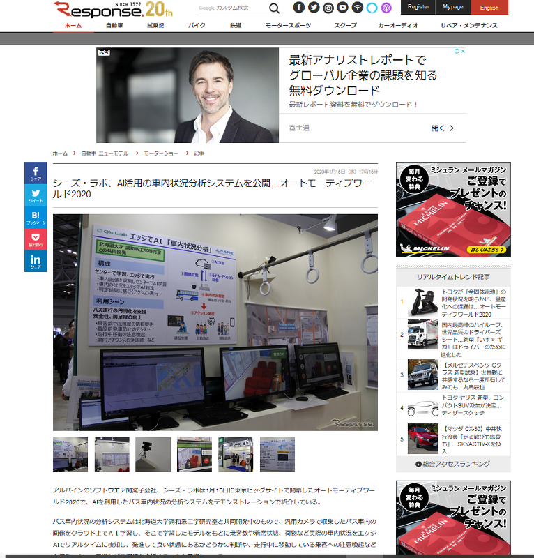 現在開催中のコネクティッド・カーEXPOのシーズ・ラボブースを、レスポンス様の記事で取り上げて頂きました。