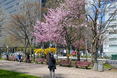 札幌はとうとう4月30日が桜の開花日となり、早速大通公園の方へ取材しに参りました。