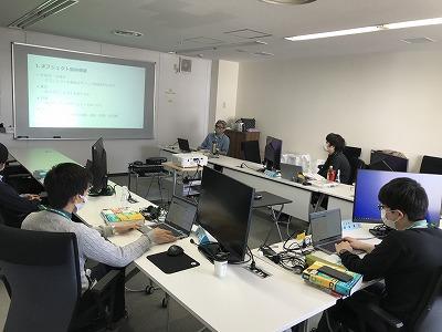 シーズ・ラボの新人の4月はご覧の通り社内でプログラミングの研修をしっかり学んでいます。
